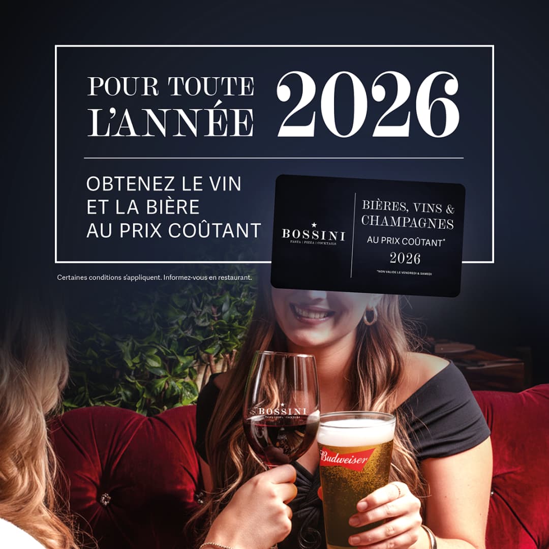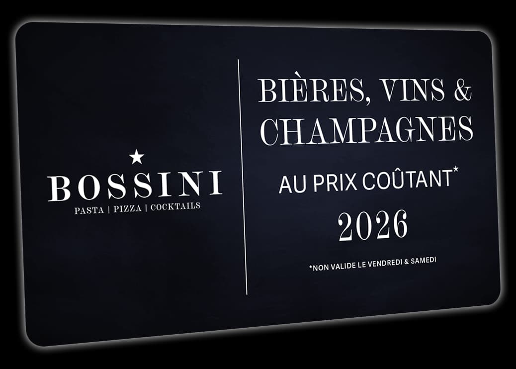 Profitez de votre carte dès aujourd’hui et savourez vos moments au Bossini avec encore plus de plaisir!